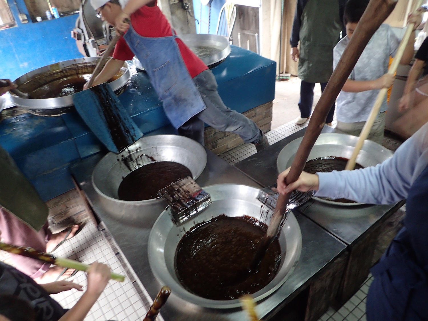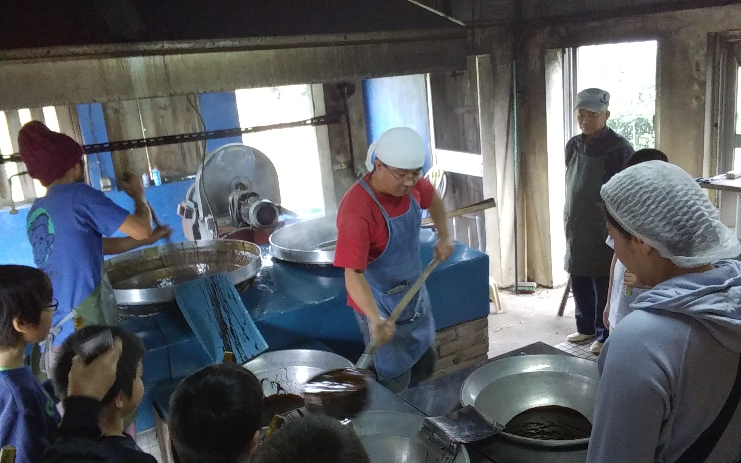 久米島2日目のメインイベント?は、じぃーまの黒ざーたーを作っている「おやつ村」での、黒糖作りの体験でした!