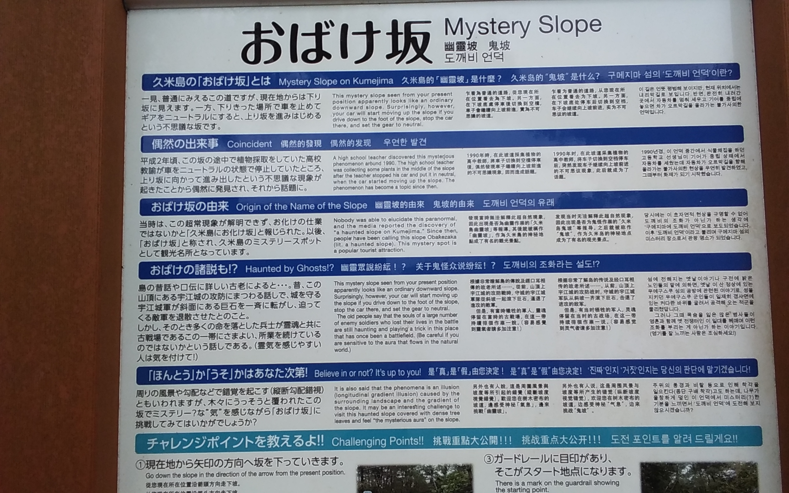 写真ではわかりにくいかもしれないのですが、実際にその場に立ってみるとどう見ても下り坂なのに、車をニュートラルにすると車が後ろに下がっていく、、つまり上り坂になっているのでした! ということで、おばけが出るわけではありませんよ~!(^^)