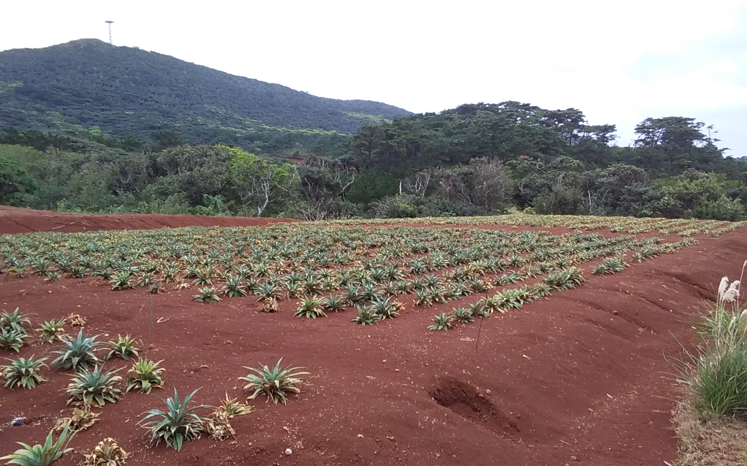 こちらは、赤嶺パイン園さんの玄関前から望む、宇江城跡です。