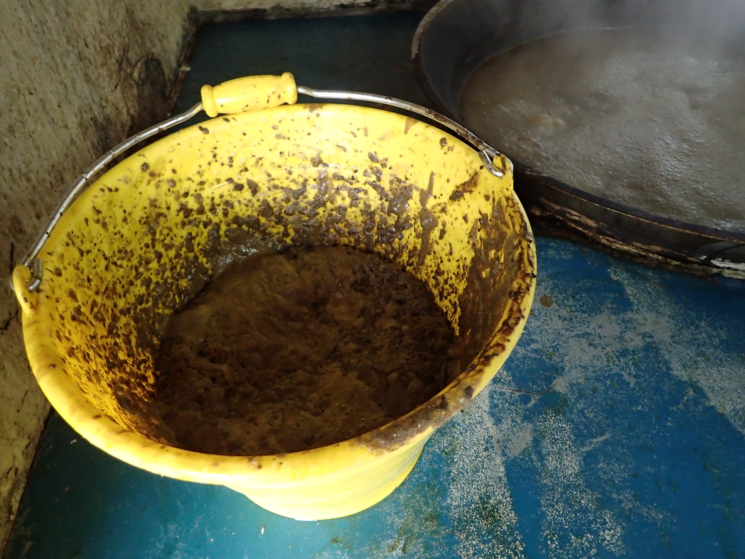 鍋の中と鍋の淵には、残っている黒糖があるのですが、
