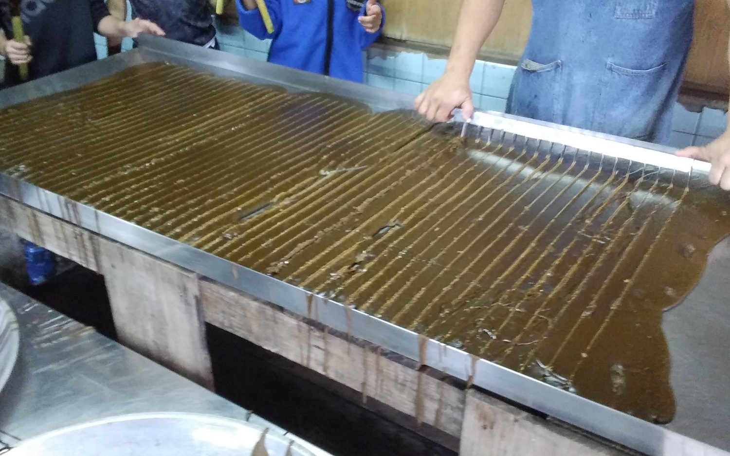 こちらは、煮詰め始めてまだ最初の段階の黒糖シロップ。とろりとした熱々のシロップです!