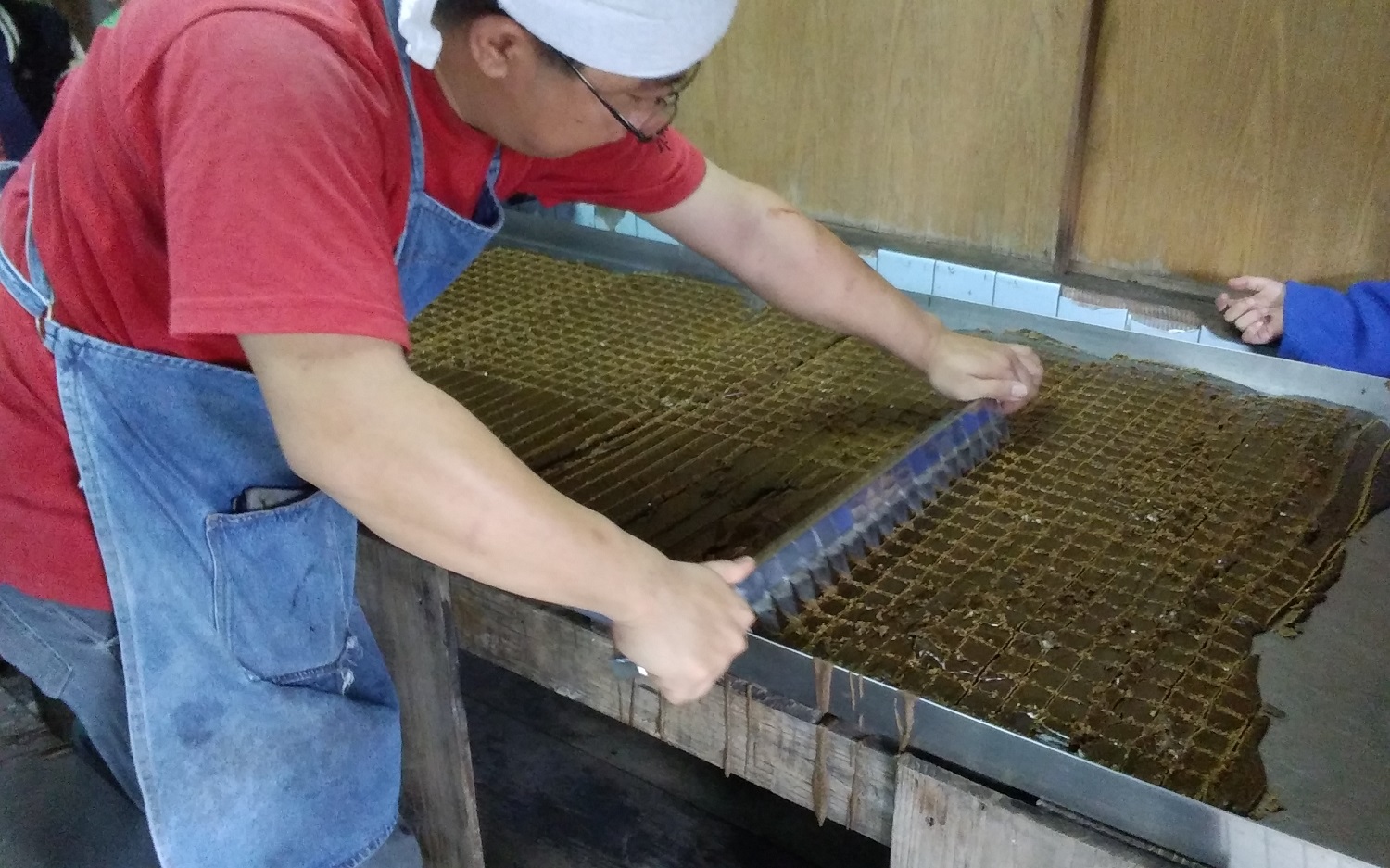 こうして、約1日寝かせておいて固まってから、手で割りほぐし、1つ1つ、袋詰めをしていくのです。