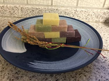 青い色のお餅は、バタフライピーというタイのオーガニックの青いお花の色ですので、自然のお色で安心ですよ!