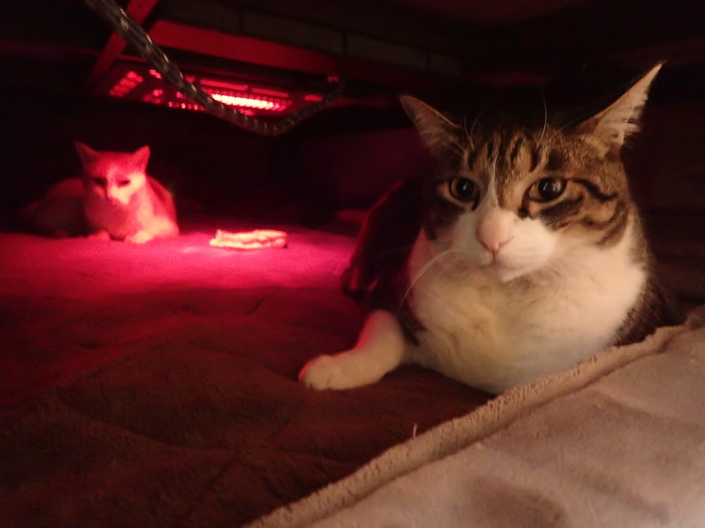 短毛種で寒がりのチャイとチビ太はこたつの中で、、