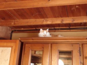 ミコ太は、食器棚の上で、、