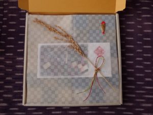 武藤さんには、一年間お世話になりましたお礼としまして、農楽福餅の「雪解けと菜の花セット」をプレゼントさせて頂きました!