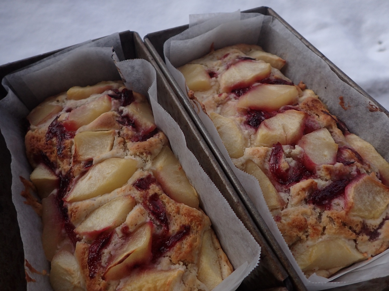 トクナガさんのリンゴと、久米島みなみ農園さんのローゼルジャムを使いましたパウンドケーキの試作第1回目です!もちろんビーガン対応のケーキです!