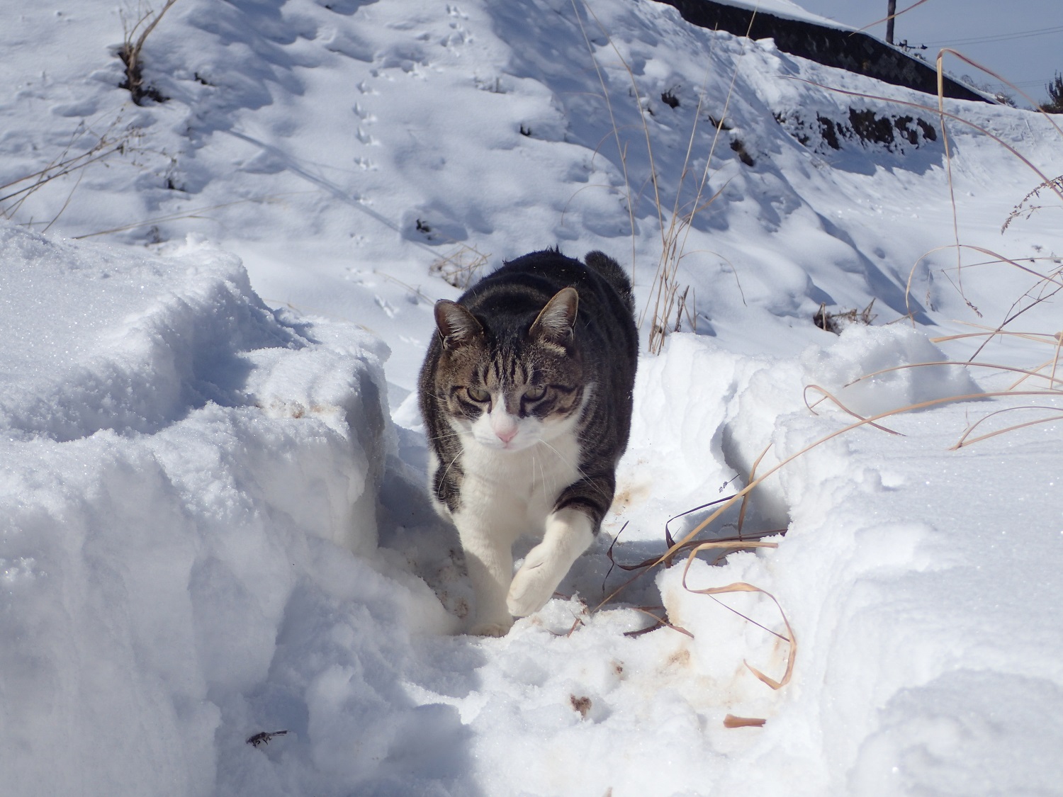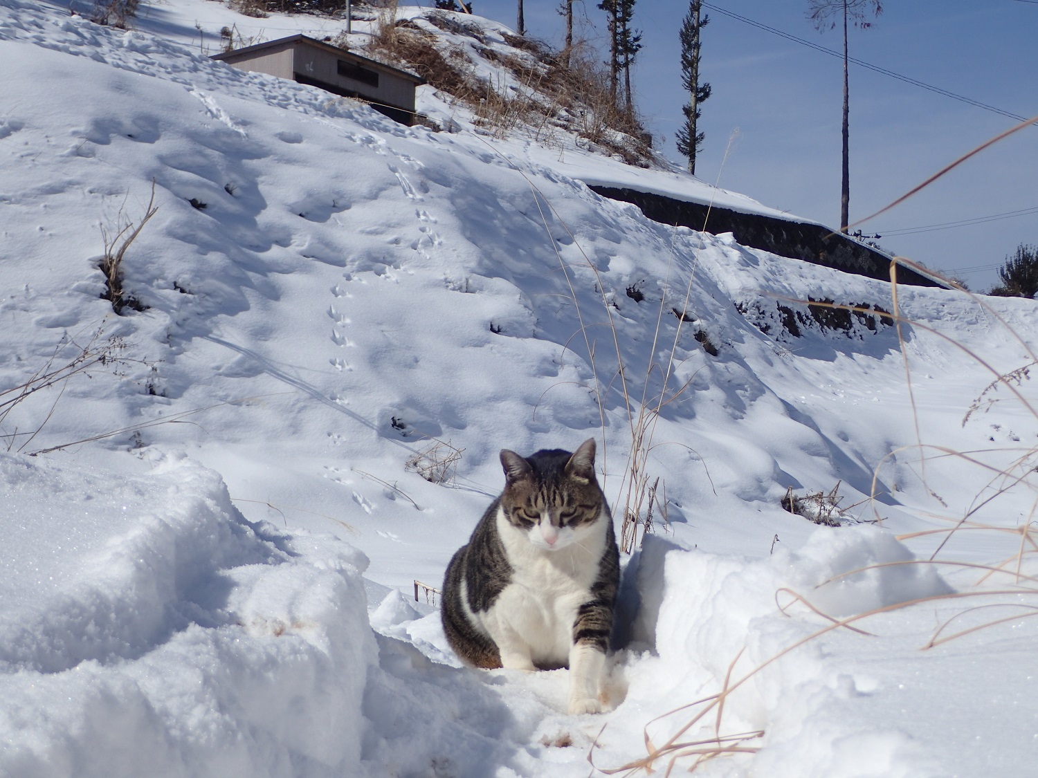 そして、毛足が短くて、痩せていて、ご年配でありますチャイちゃんにとっては、雪の中はとても寒くて辛かったようです、、