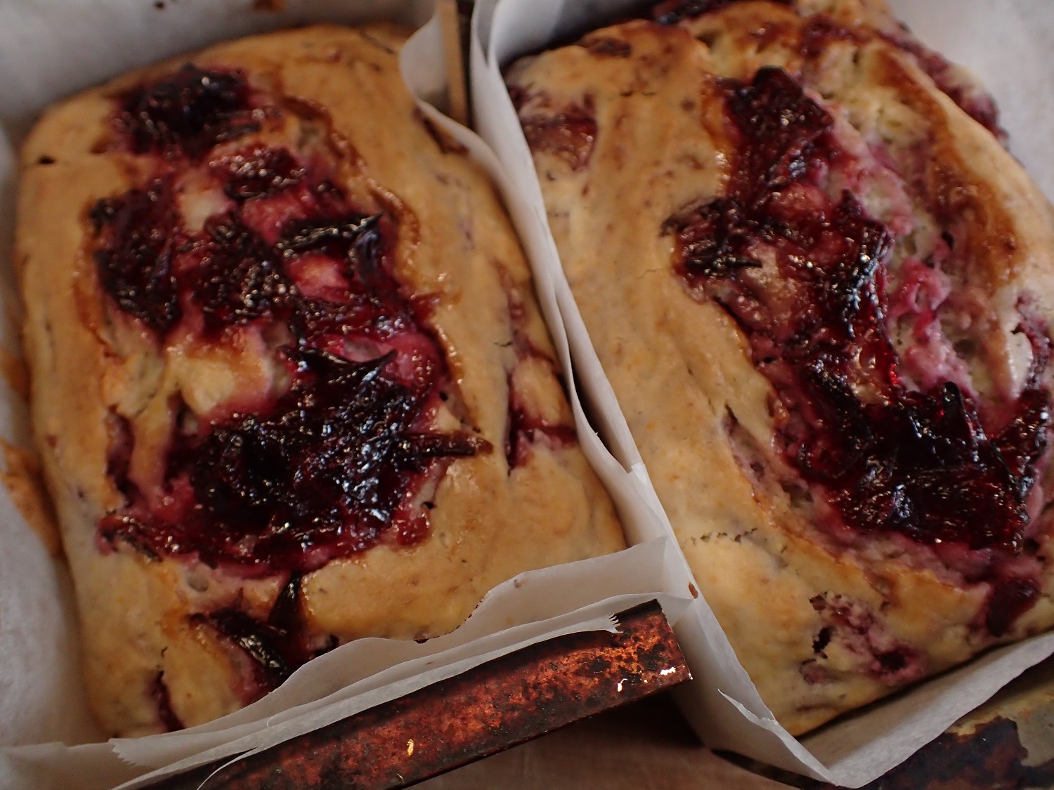 出来上がりましたローゼルジャムで、さっそくパウンドケーキを焼いてみました!