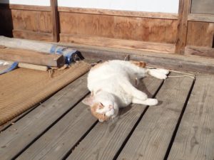 でも、薪ストーブの前にいると、身体がとろけるニャン、、、