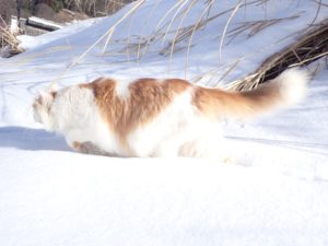北欧系の血が混じっているであろうミコ太は、毛がモフモフとしていますので、寒さや雪の中など、平気のヘイサ!