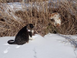 周りはまだ雪に被われているので、たった二人ぼっちでちょっと不安げな様子でしたね、、