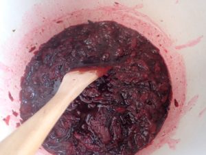 少し柔らかくなってきましたら、オーガニックのきび砂糖を入れながら、煮詰めて行きます。
