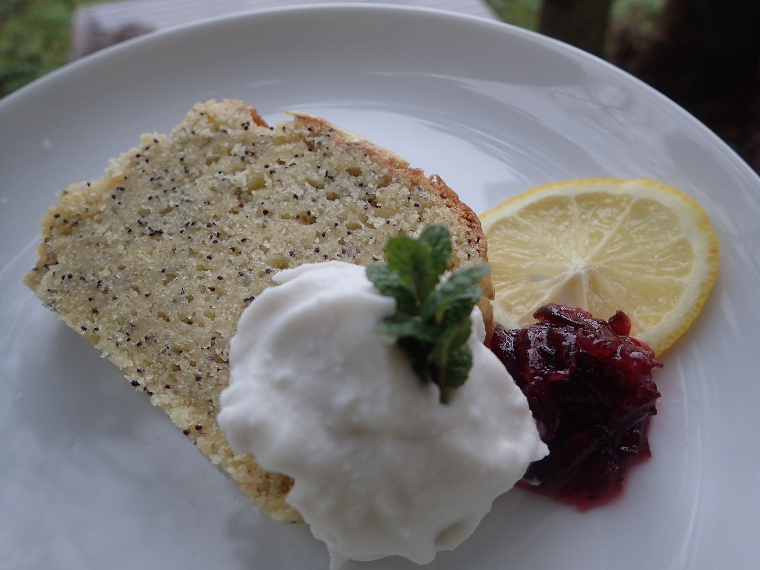 スイーツには、ローストロベリームースと、新作でレモンポピーシードケーキ!