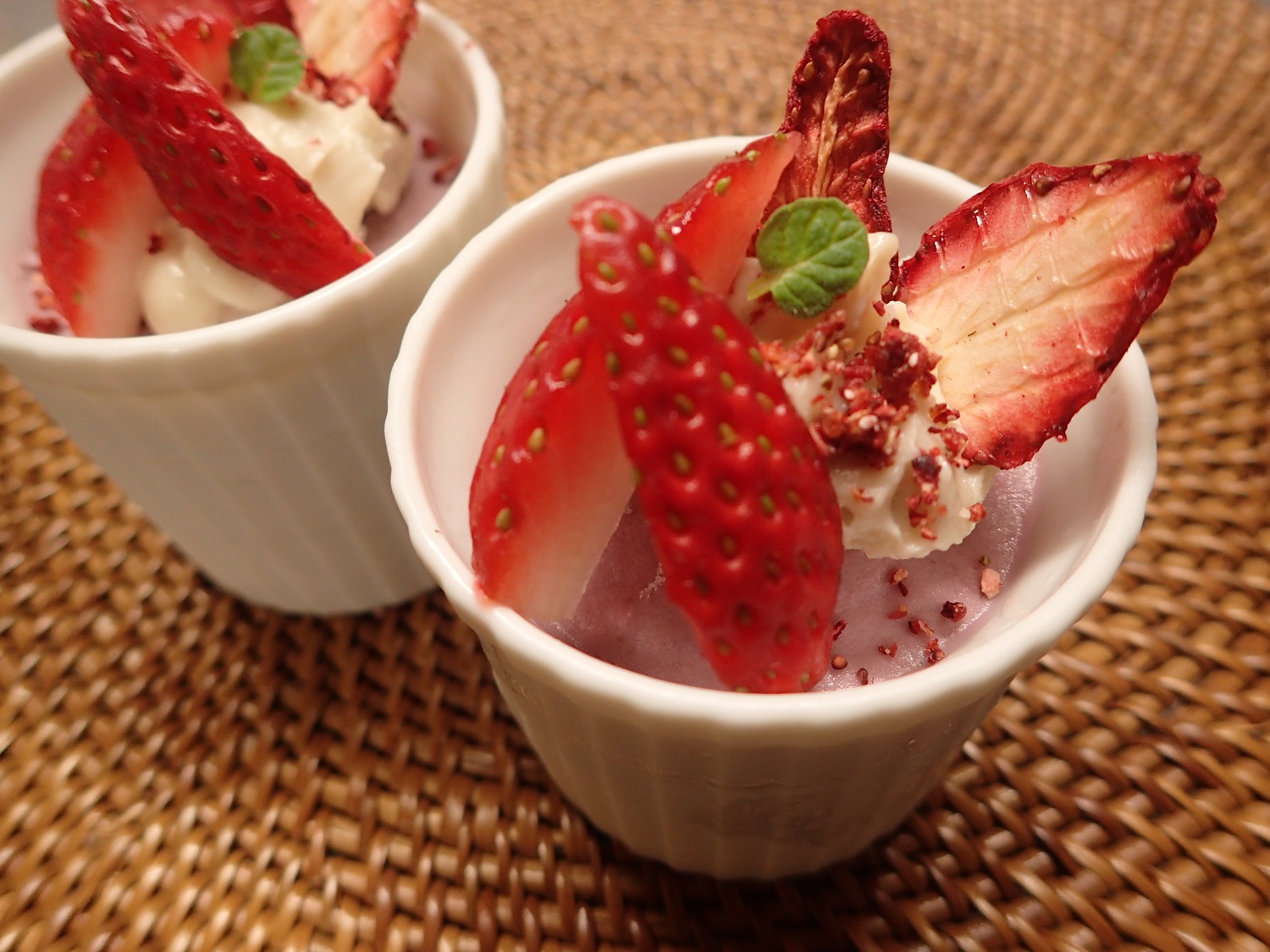 久米島みなみ農園さんのローゼルで作りましたローゼルジャムと、ココナツ生クリームを添えました。