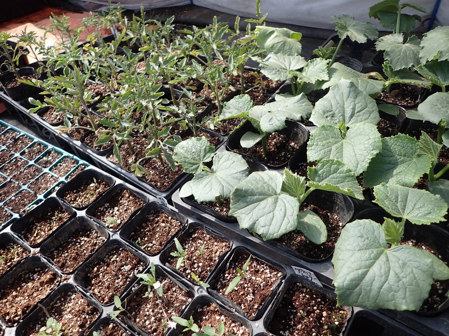 ハウスでは、オクラの種やレタス類の種まきをしました。