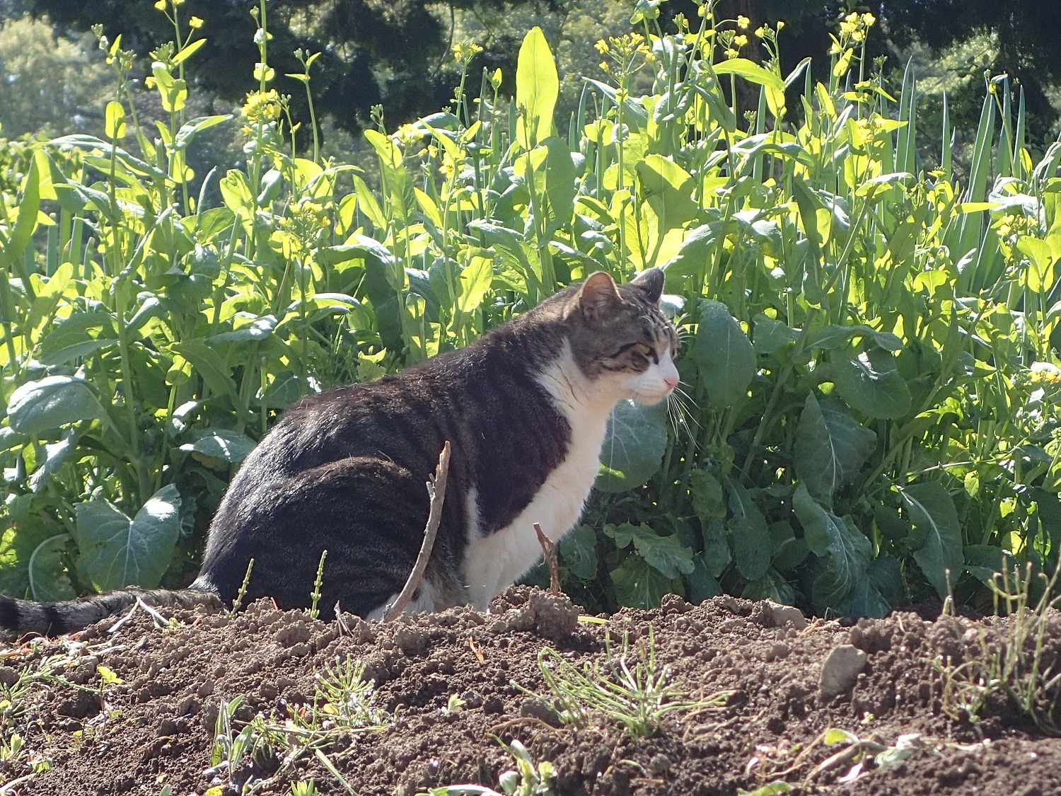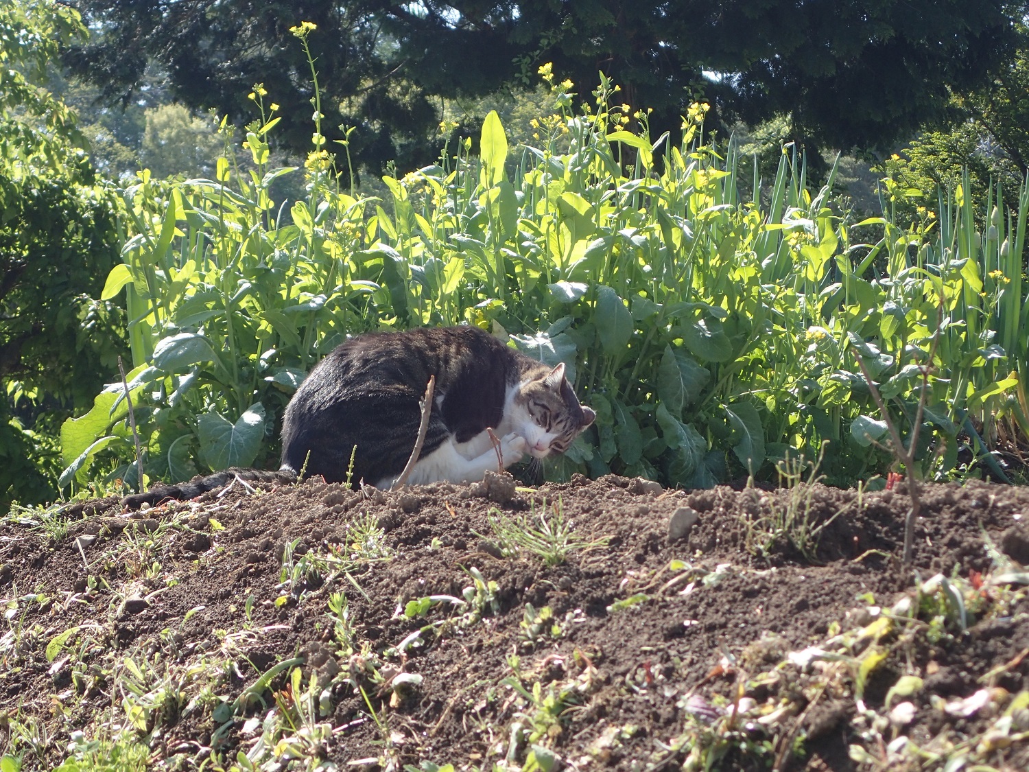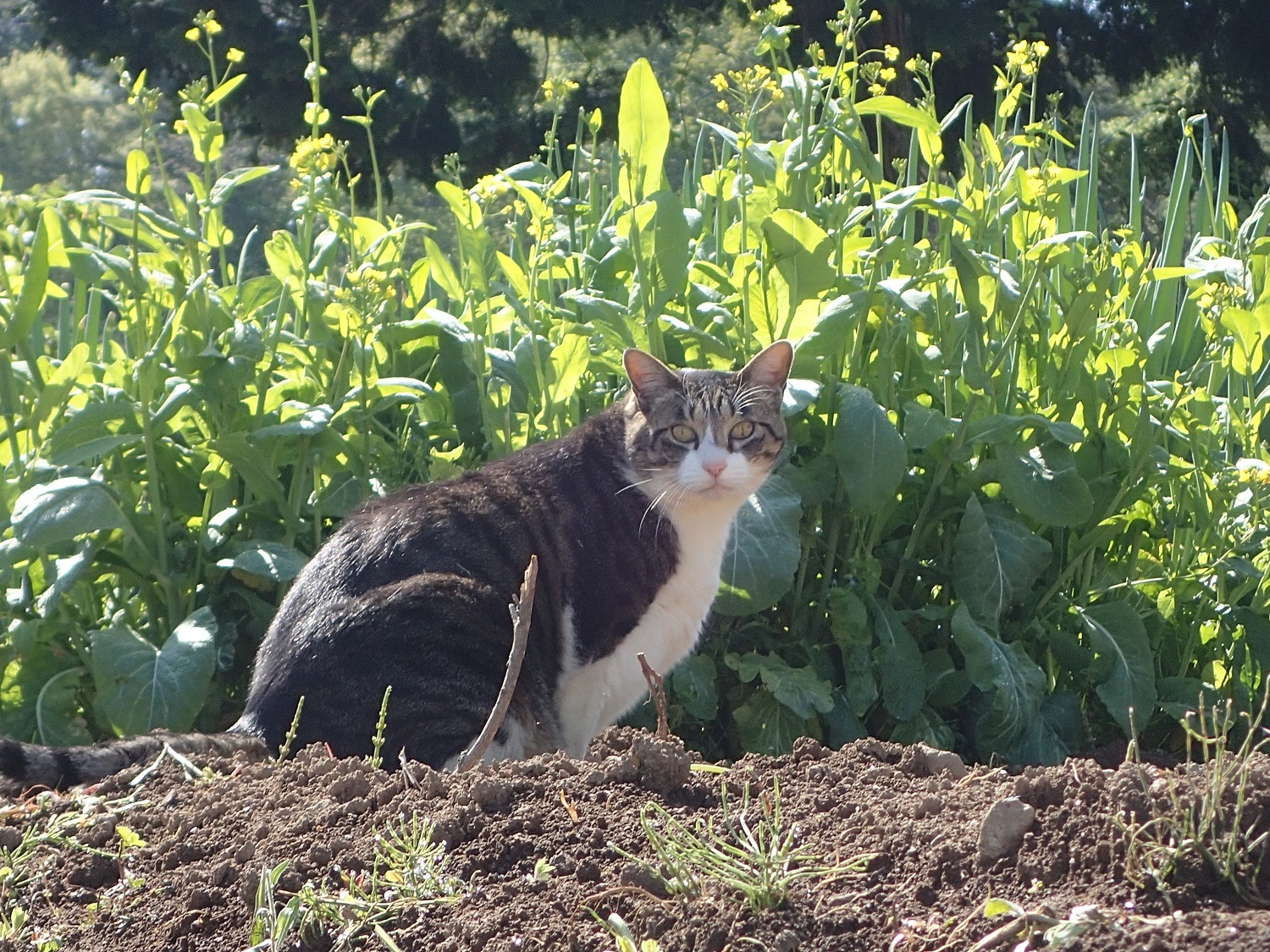 かご猫チビ太に気がついた瞬間、農作業の疲れが取れて気持ちが和みました。。