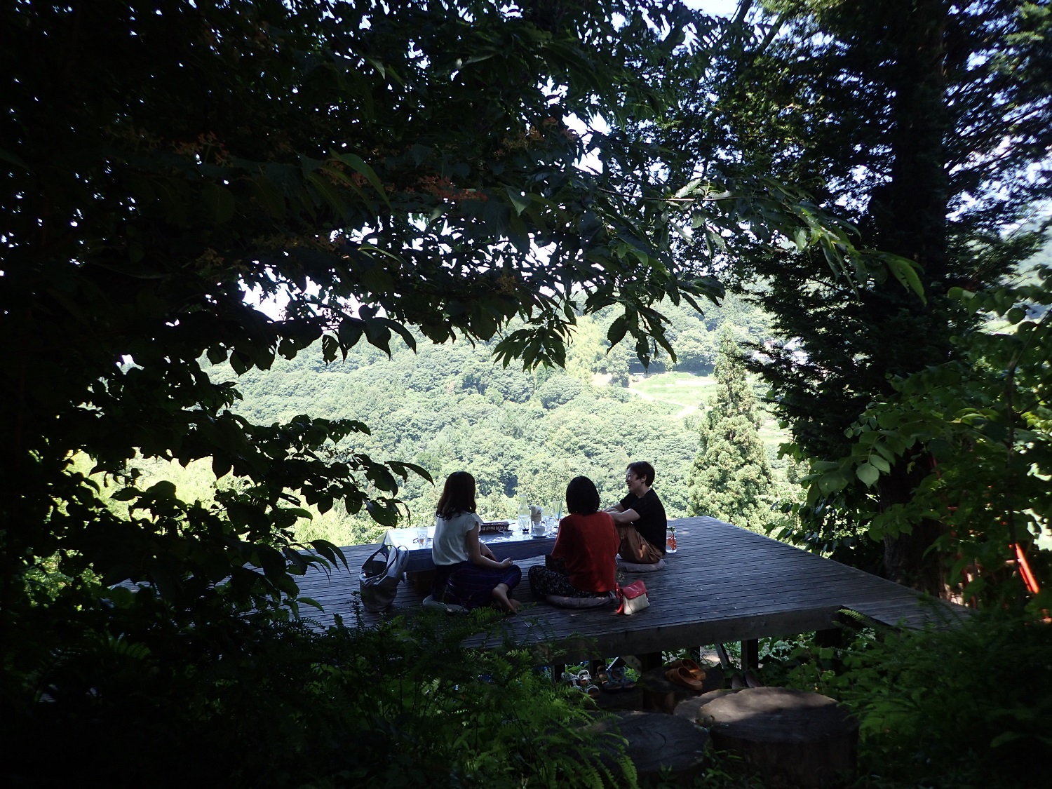 市街からのらCaféにお越しのお客様に、ウッドデッキにテーブルをご用意しまして、百年栗の木陰で涼んで頂きました。。