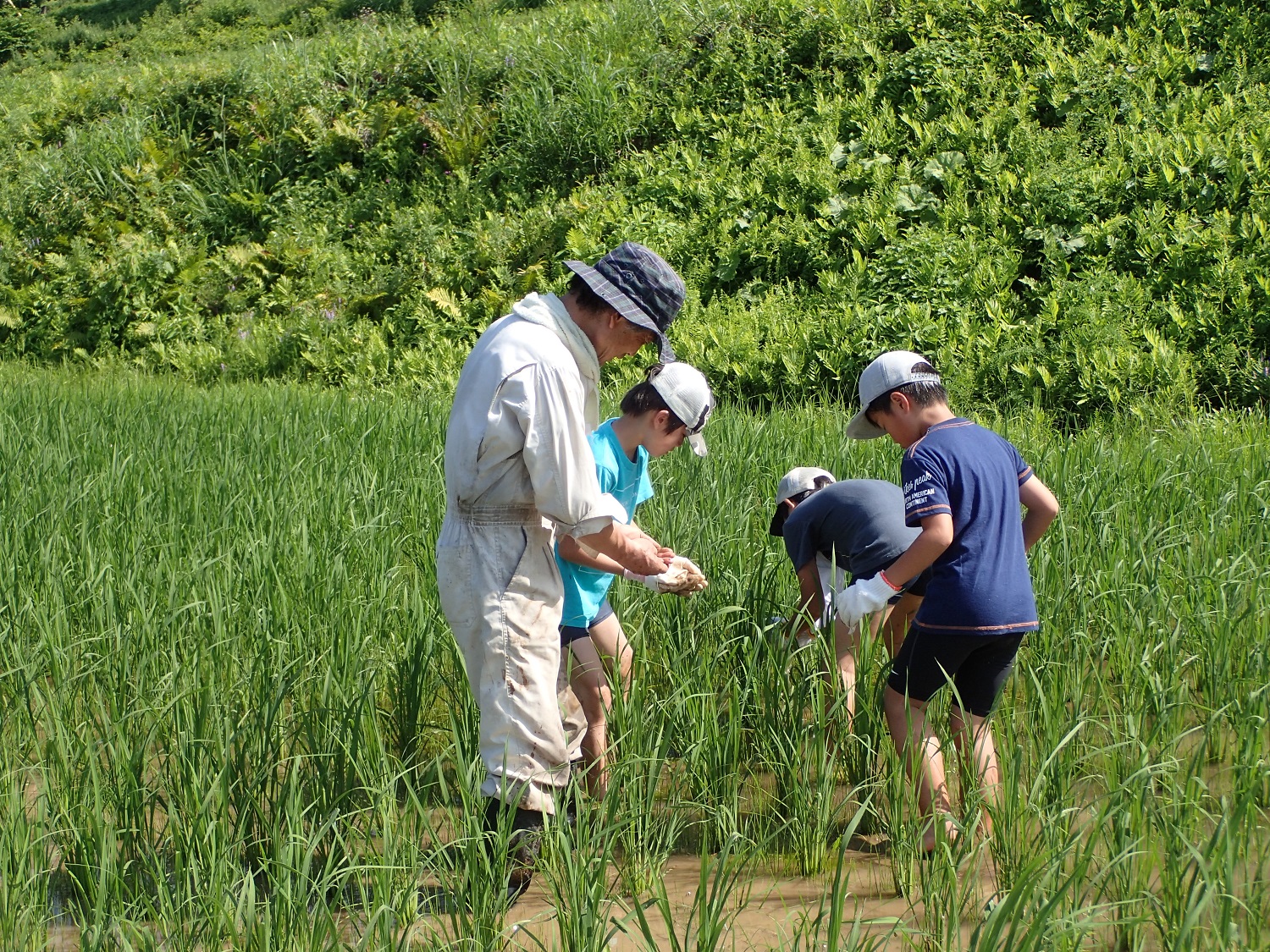 お米が草に負けてしまわないように、みんなで一生懸命草取りを頑張りました!!