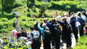学生さんたちが母屋の前の坂道に並び、手のアーチを作ってくれて、その中を福島の皆さんが通ってご到着!