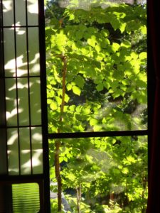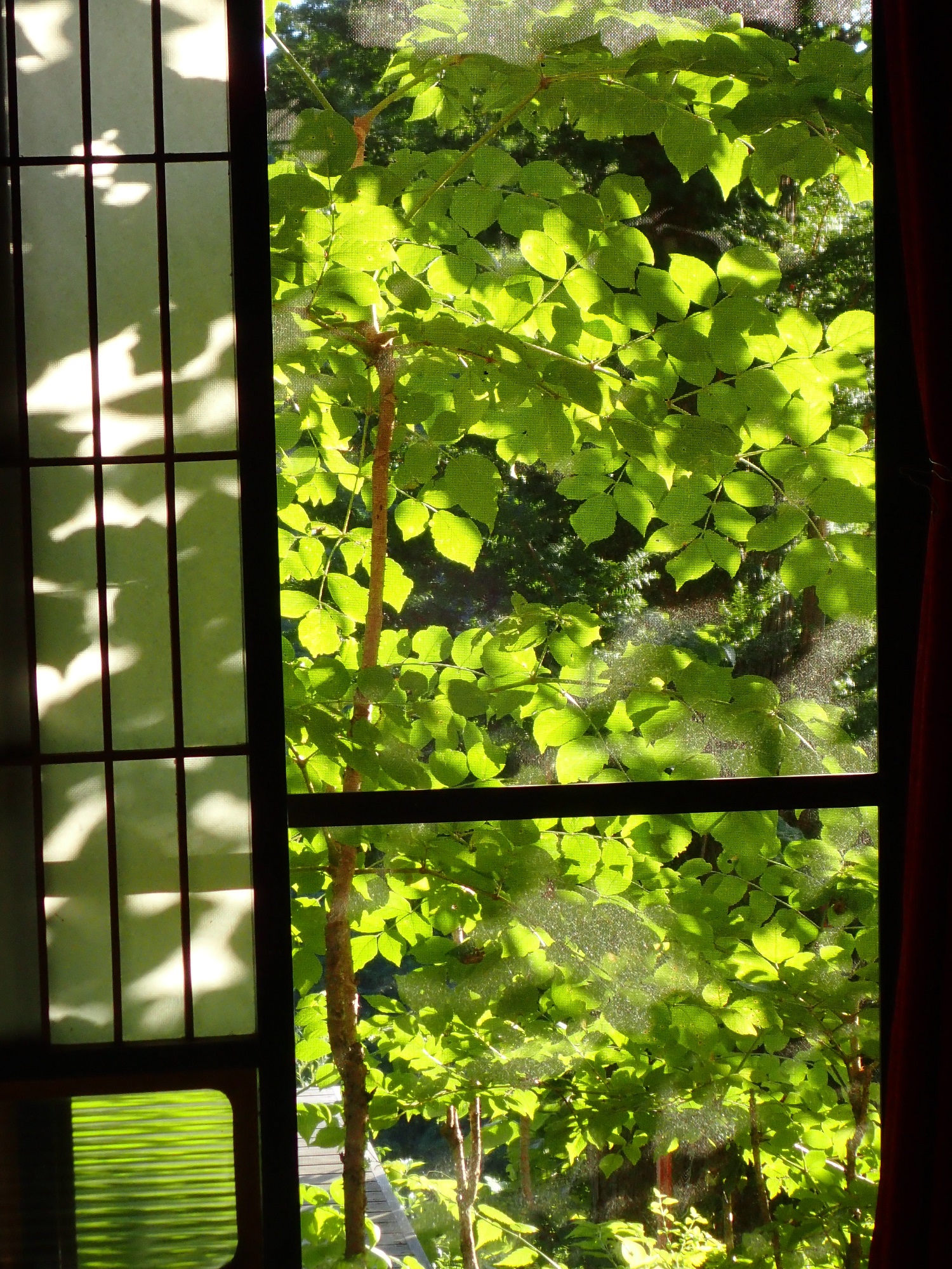 先刻、夕飯を頂いている時に、障子が淡い赤紫色に染まっていて、不思議だな、と感じました。