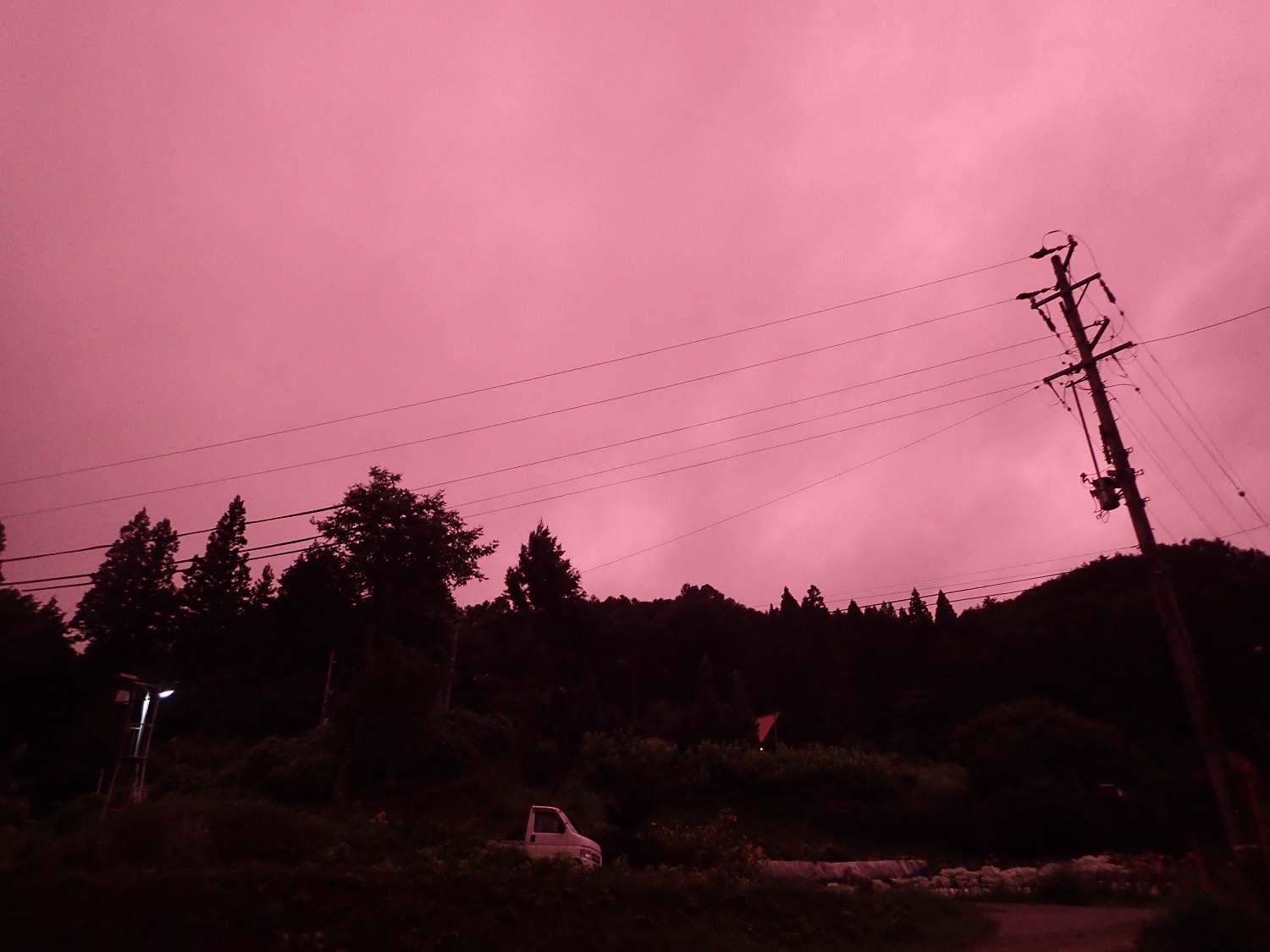 慌てて玄関から南側に出てみると、もう、空一面が淡い赤紫!