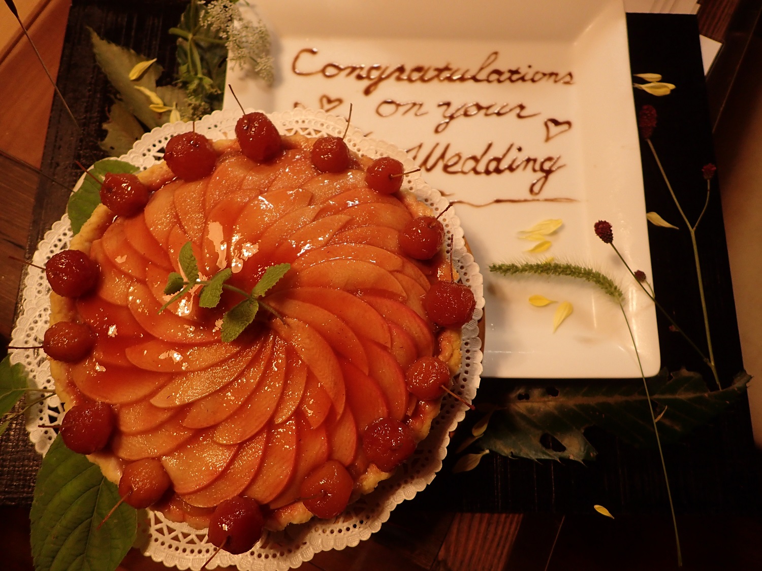 このお祝いのケーキは、前の晩にお二人にプレゼントしましたケーキ!佐藤料理長と農楽母さんの合作です!!