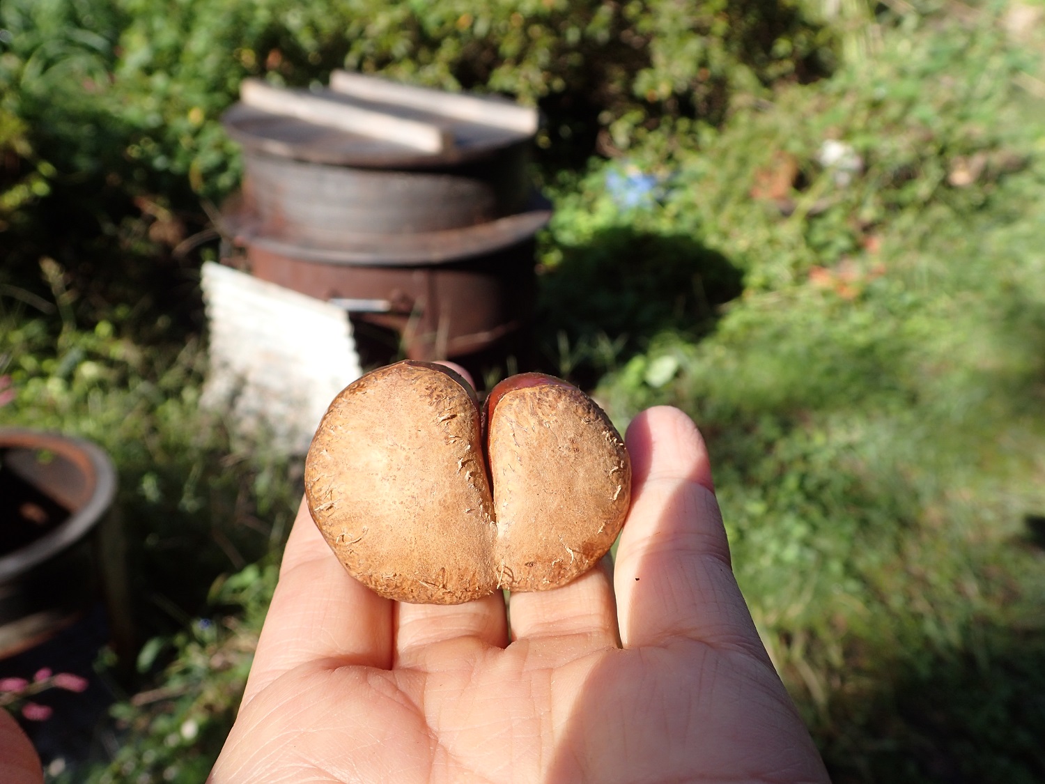 春に花を咲かせて実をつけて、それがはじけてこぼれ、夏の間土に中で休眠し、秋になって芽を出してきたのです!