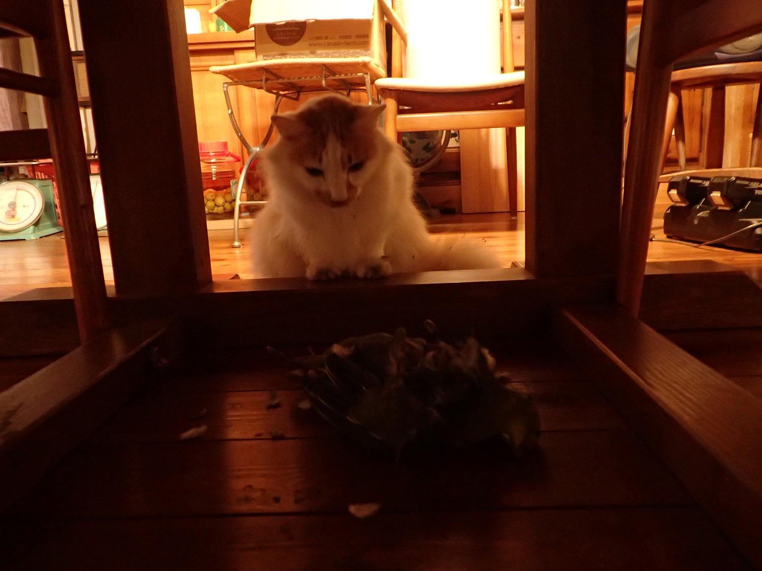 さて、、夜になり、ミコ太が大物をくわえて帰ってきました。。