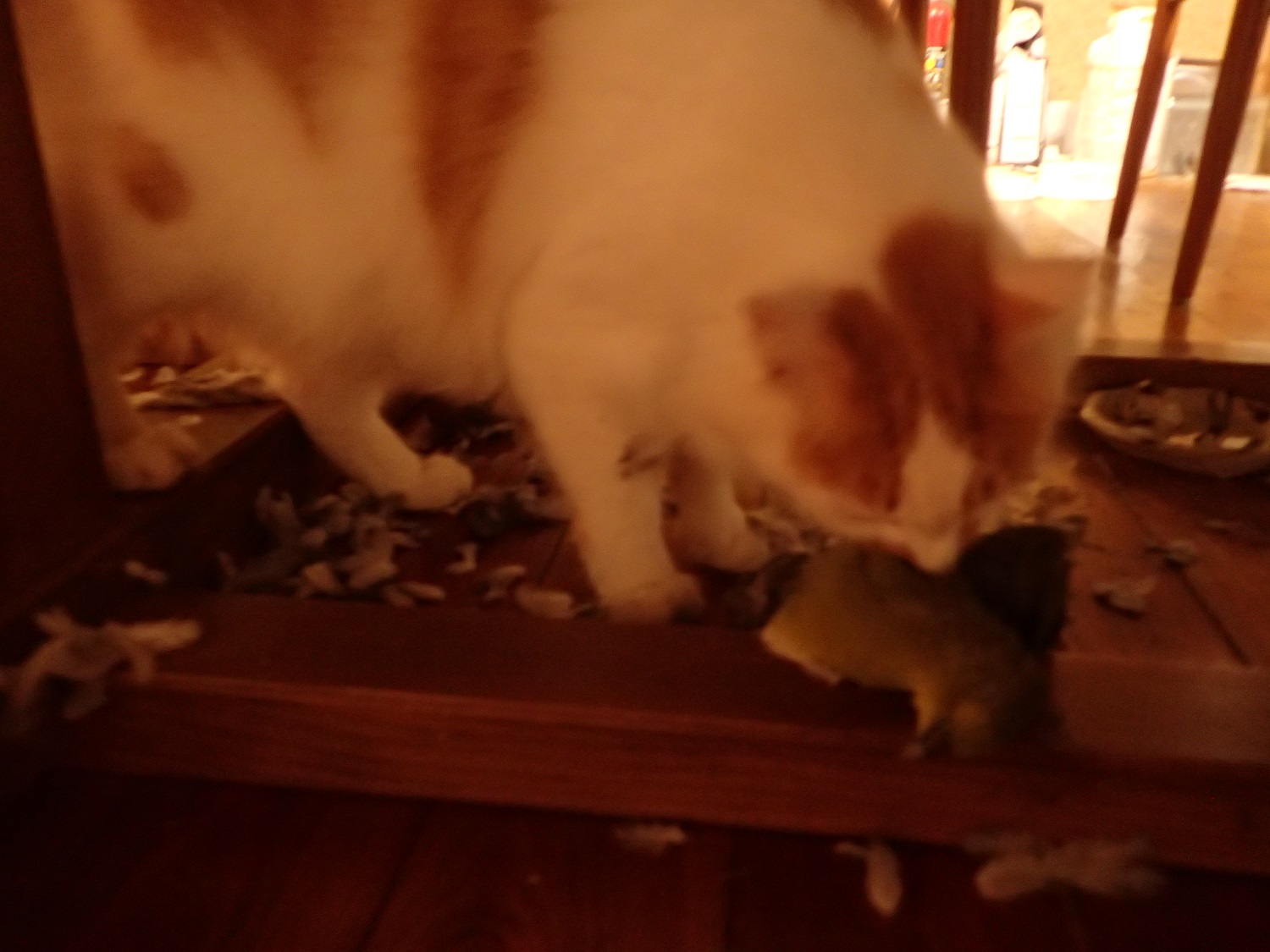 ミコ太ン、散々羽をむしって散らかして、それで気が済んだのかしばらく離れ、、