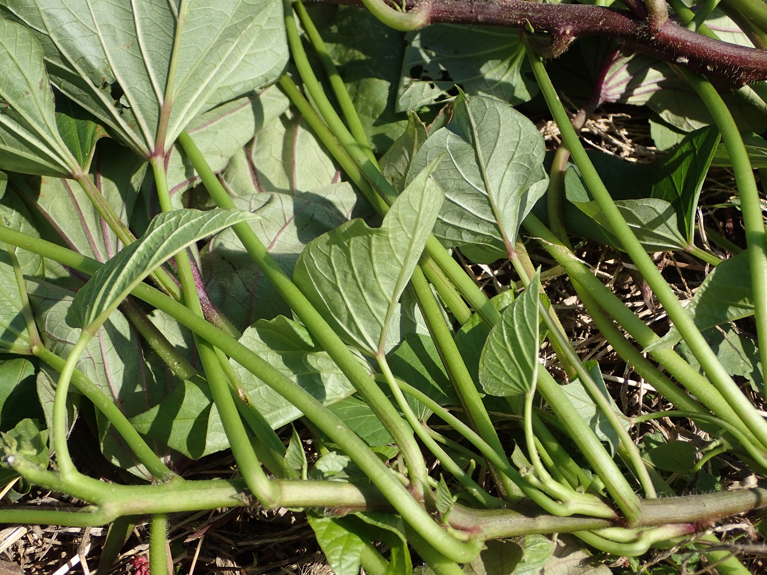 そうそう、それから、このサツマイモの茎も美味しいのですよ、、