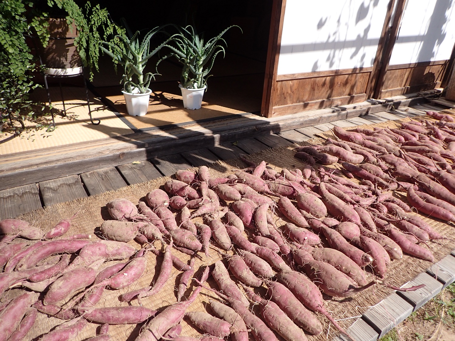 掘り上げましたサツマイモは、縁側で少しの間干しまして、、お客様への季節の野菜セットに入ったり、スイーツづくりに使われます!
