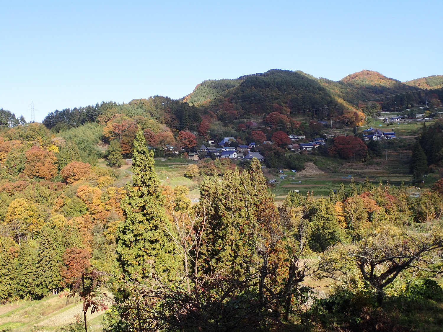 でも、視界に広がるお向かいの集落の紅葉が美しく、