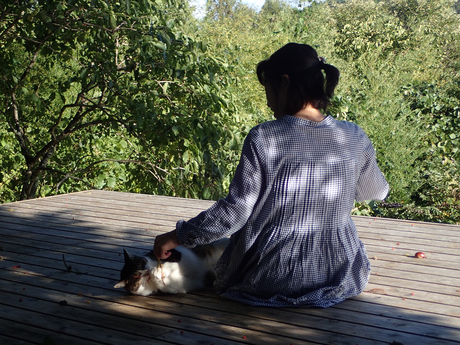 清々しい朝の空気の中で、チビ太はウッドデッキへ、、、ゆったりとしたグルーミングタイムです。。