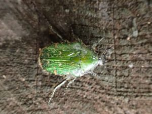 先日、母屋に飛び込んできました、エメラルドグリーンのコガネムシです!