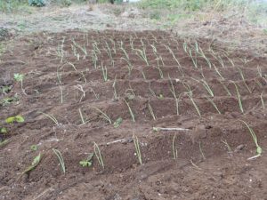 さて、、今日は元気になりまして、畑で玉ねぎの移植作業などを行いました。