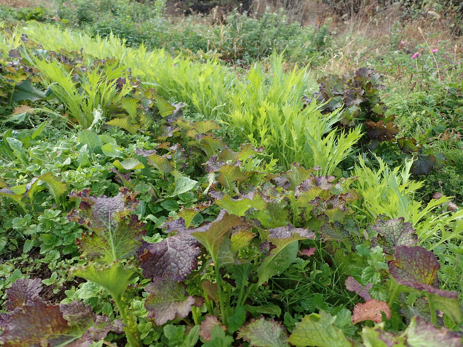 水菜にパープルウエーブマスタードに、ワサビ菜に、、