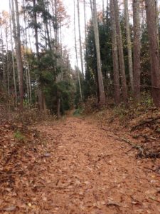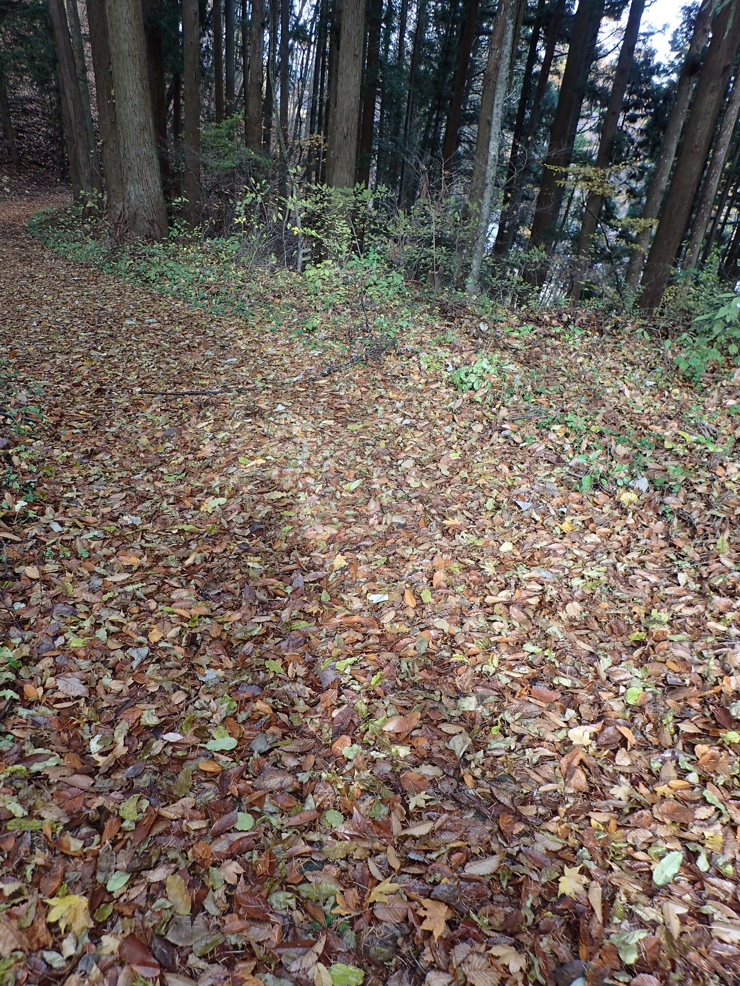 そして、道の両側が、それ以外の落葉樹の林ですと、いろいろな葉っぱのじゅうたんとなります。