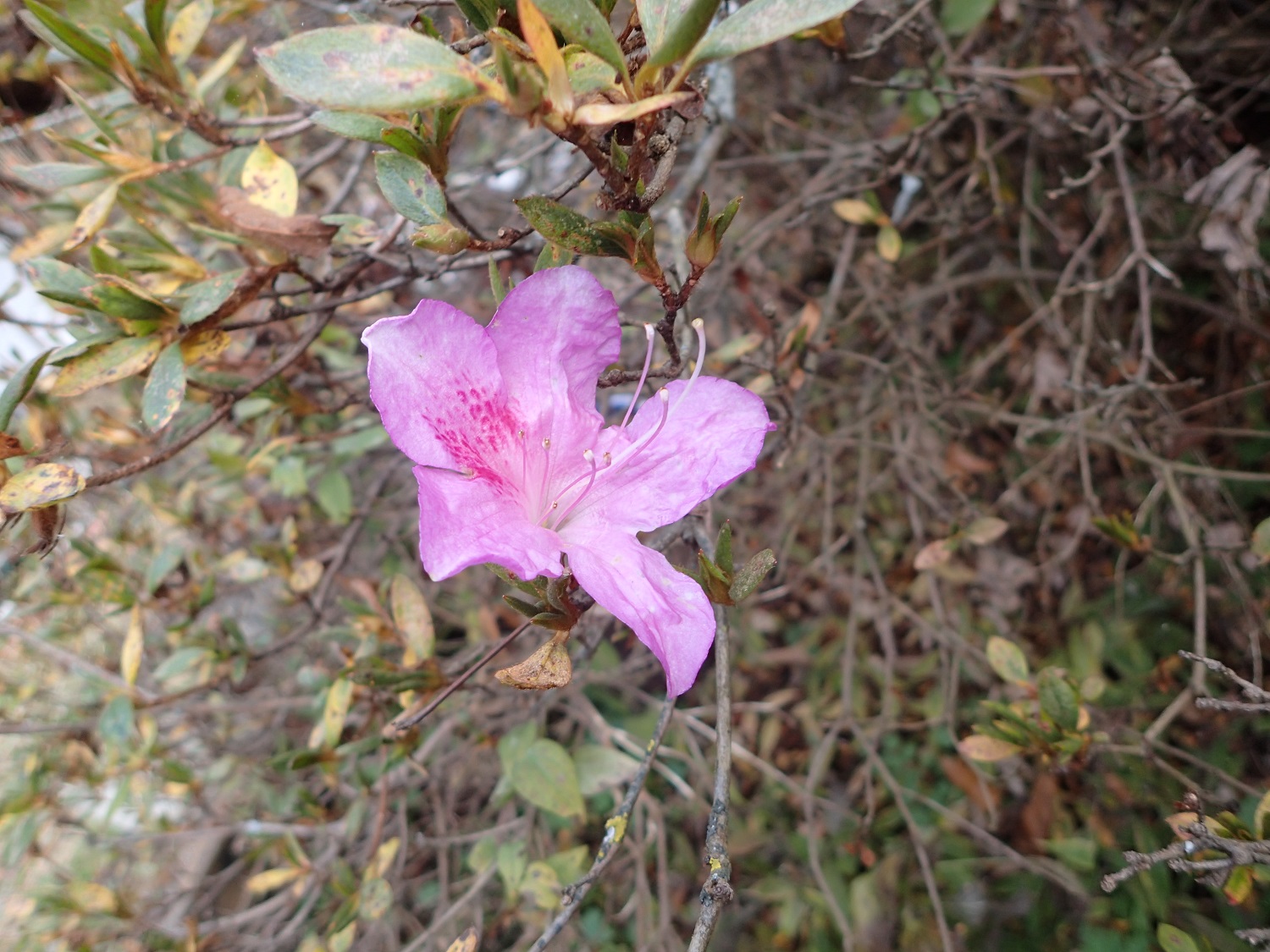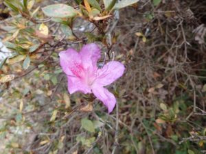 それに、狂い咲きというのでしょうか、サツキの花も一輪咲いているではありませんか!