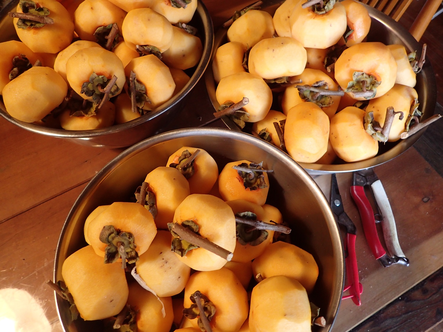 今年は渋柿が豊作で、頂いた渋柿の皮剥きに追われています。