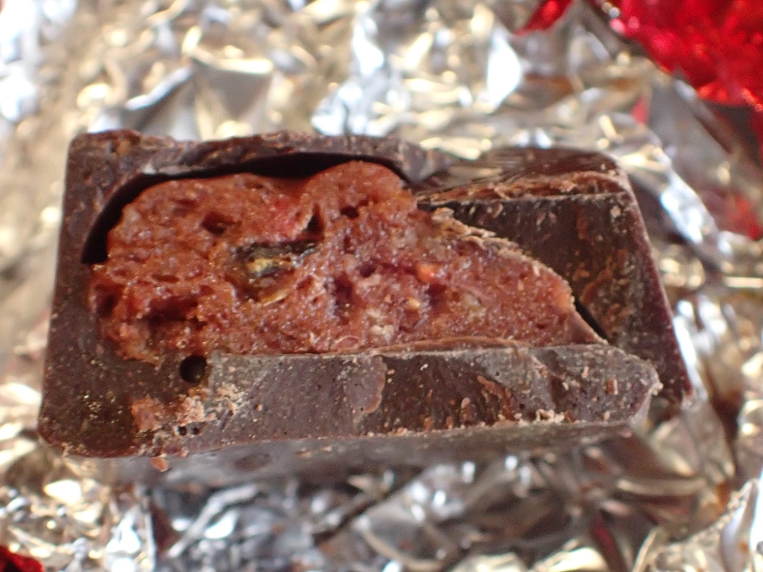 そして、ラズベリーパウダーと、ストロベリーパウダー、デーツの甘味のクリームが中に入っています!