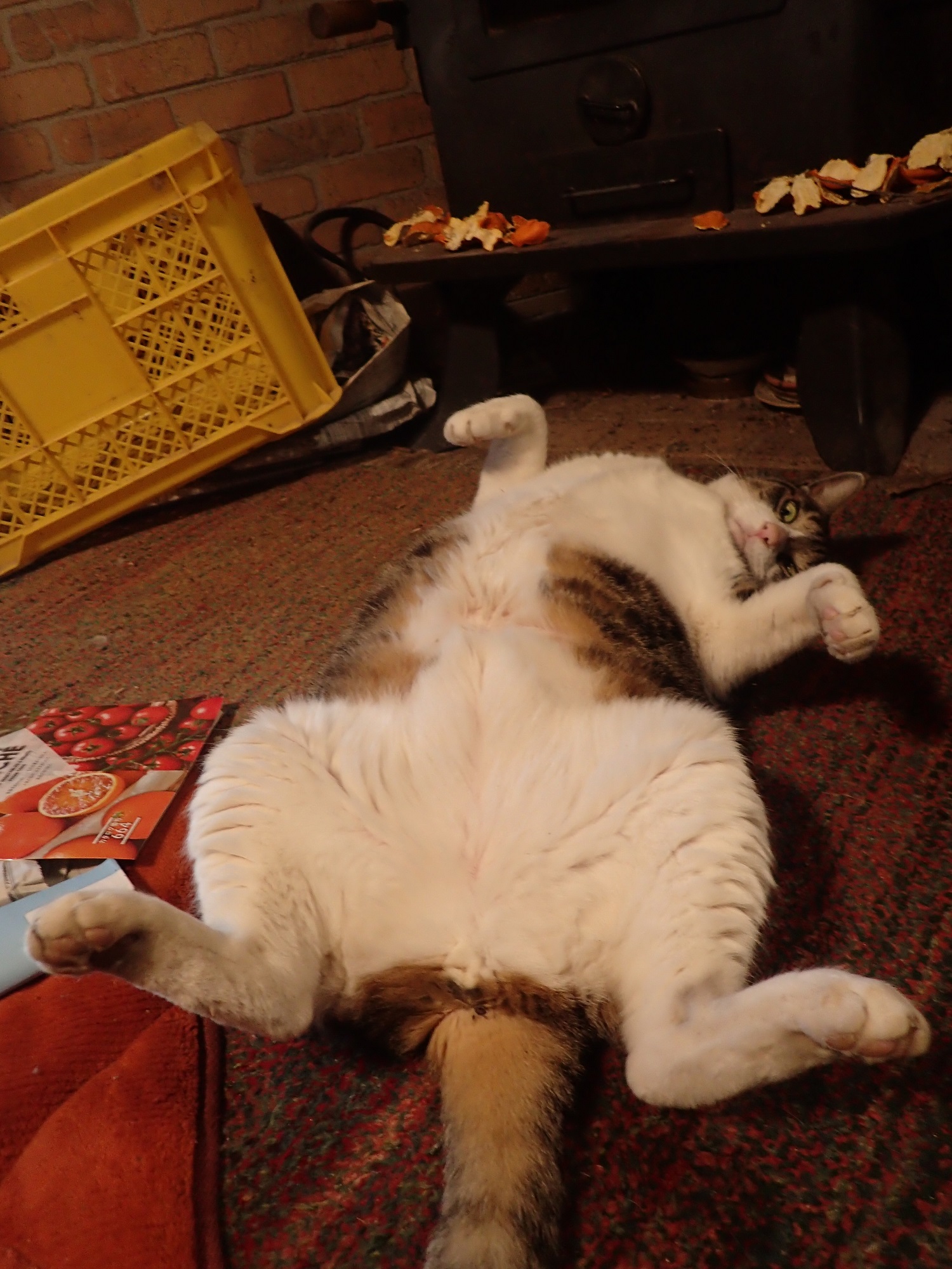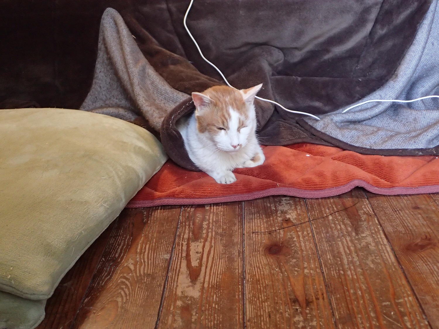 居間は、薪ストーブと石油ストーブの両方で暖を取っているのですが、農楽猫たちは、やはり体を寄せ合うのが一番みたい!