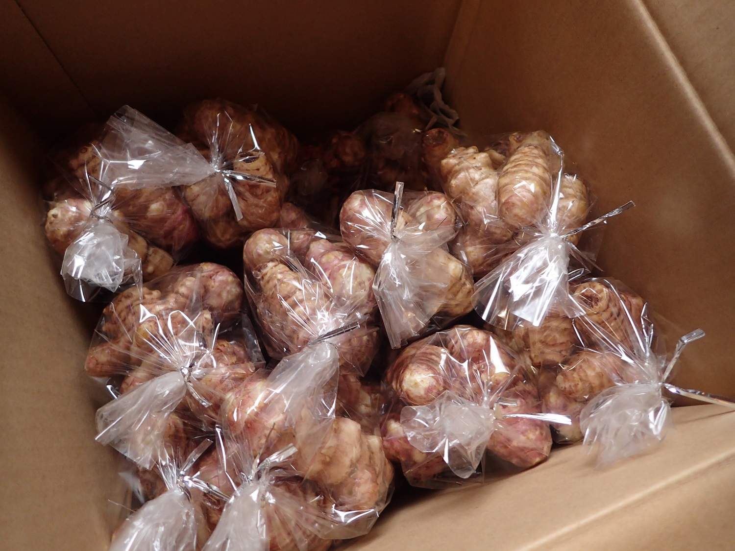 午前中10時ころから畑へ出かけ、長野県のアンテナショップ「銀座NAGANO」に発送する赤キクイモを掘り上げたのですが、お昼前に終わって良かったです!