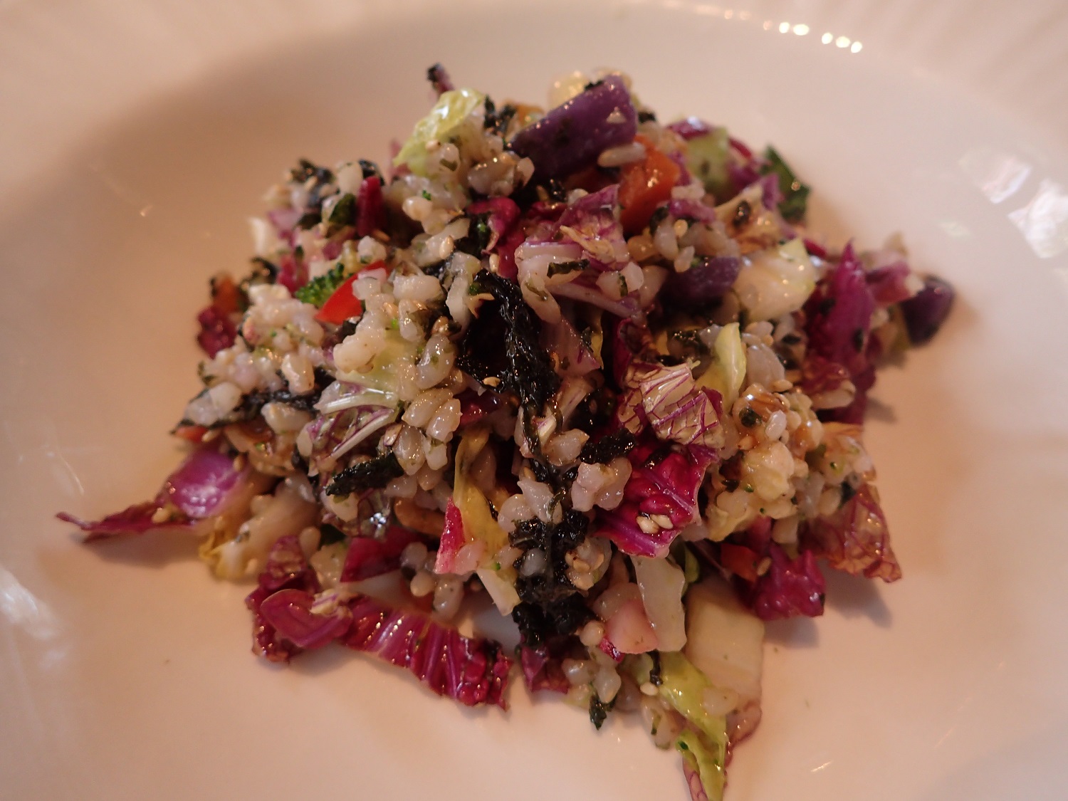 そして、アボガドや玄米、ミネラルたっぷりの海藻に亜麻仁油をたっぷりとかけたサラダ!