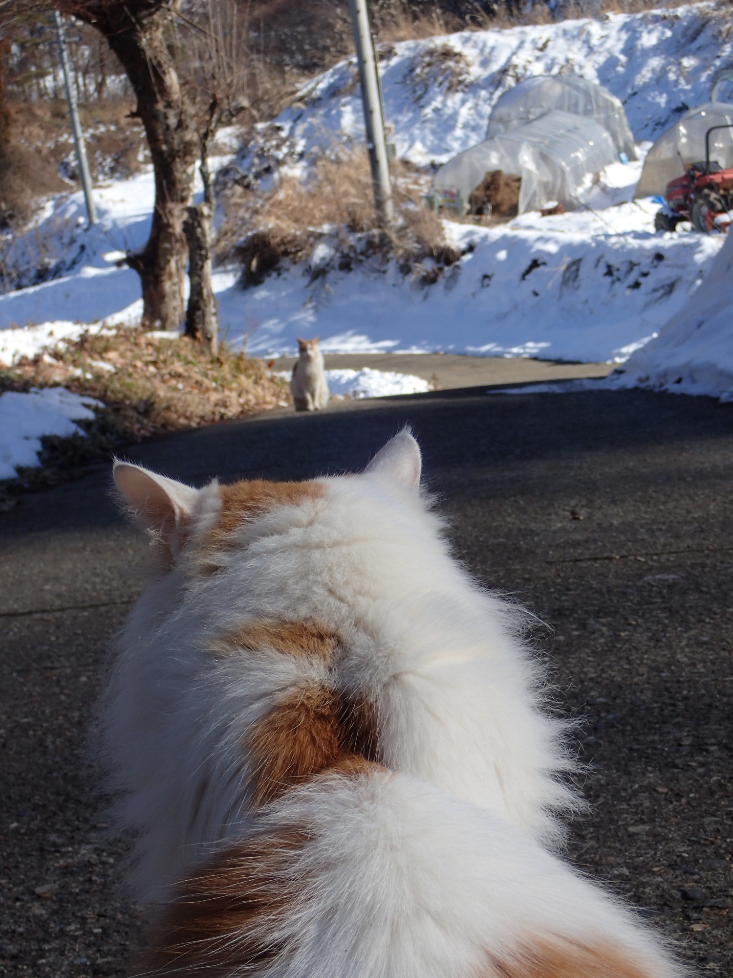 新顔に、一瞬ともひるまずに、そして遠くへと追い払ってくれたチビ太!