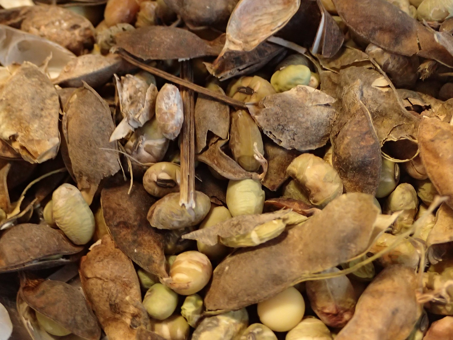 ハウスに残っている大豆、今年一番たくさん撮れたのは、ナカセンナリという品種なのですが、まだ80キロ近くありそうです。。