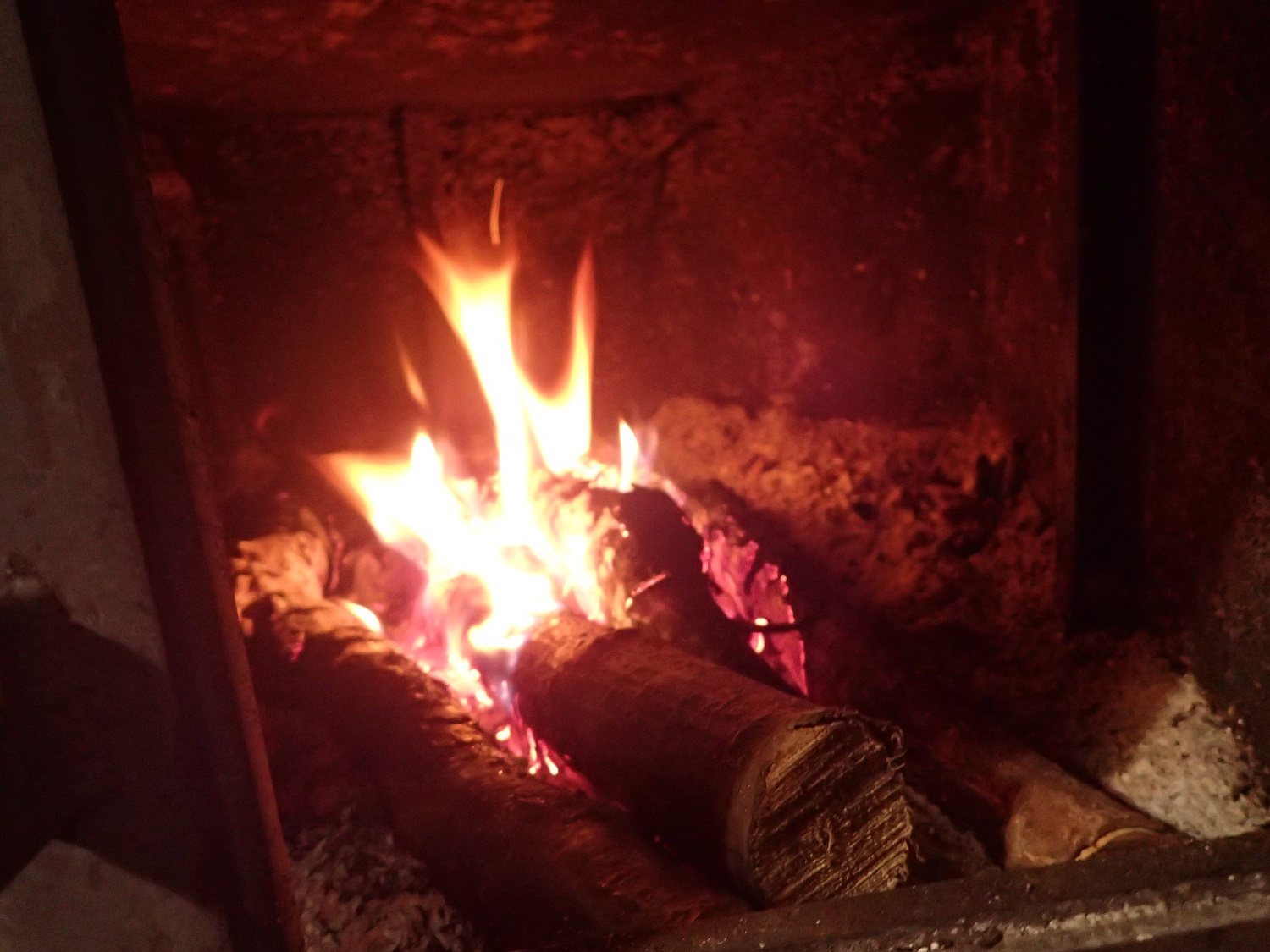 さて、、そうはいっても今日はまだとても寒く、薪ストーブを焚いています。