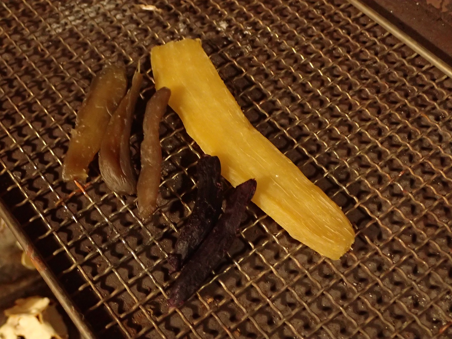 そして、薪ストーブの上では、出来上がりました干し芋を焼いて、ハミハミと美味しく頂いております!