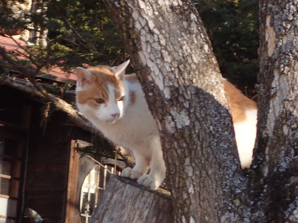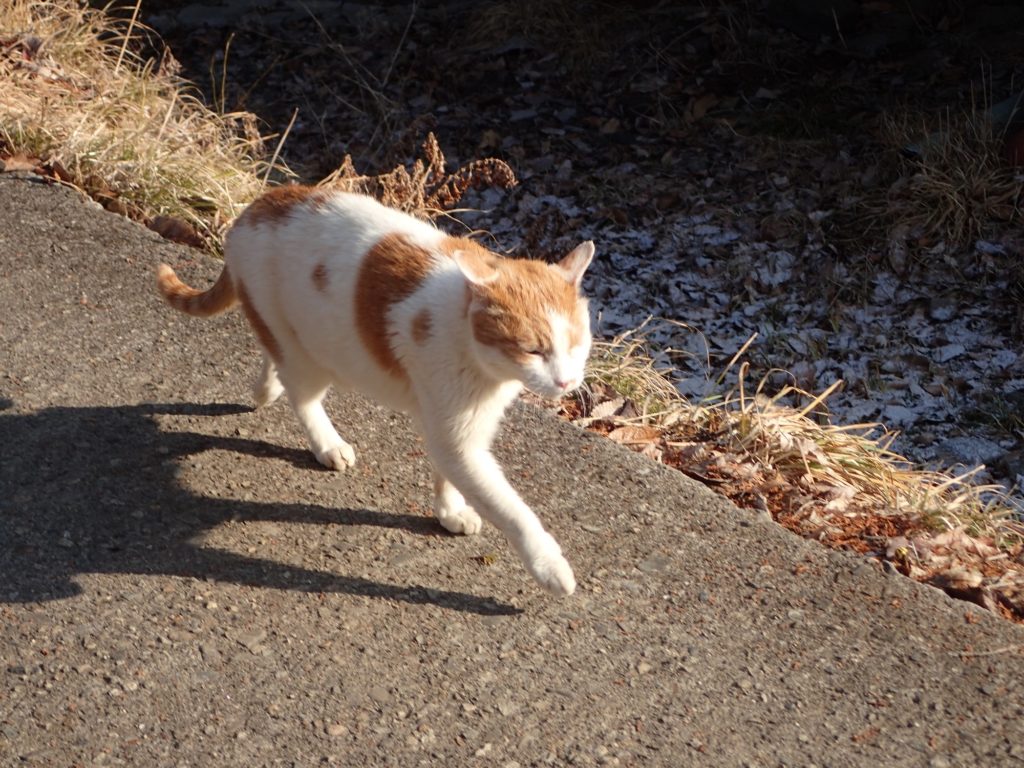 それでも、「一緒にお散歩へ行こうよ!」と何回か声をかけ、、しぶしぶと動き出してくれた3ニャンでしたが、、チビ太とミコ太は母屋前の坂道でストップ。。チャイだけが、一緒にお散歩についてきてくれました!