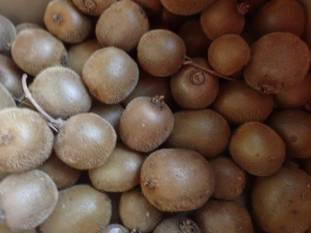 それから、キウイを採りに少し離れた畑へと出かけました。半ば野生化したキウイの樹、収穫するタイミングによってシカとの競争になるのですが、今年はシカの勝ち!(つまり、農楽母さんの負け!)。シカの口が届きそうなところは、全て食べられてしまっていまして、残りは、つるが高い木に巻き付いて、木登りをしないと採れないようなところばかりに残っている実だけでした。。
